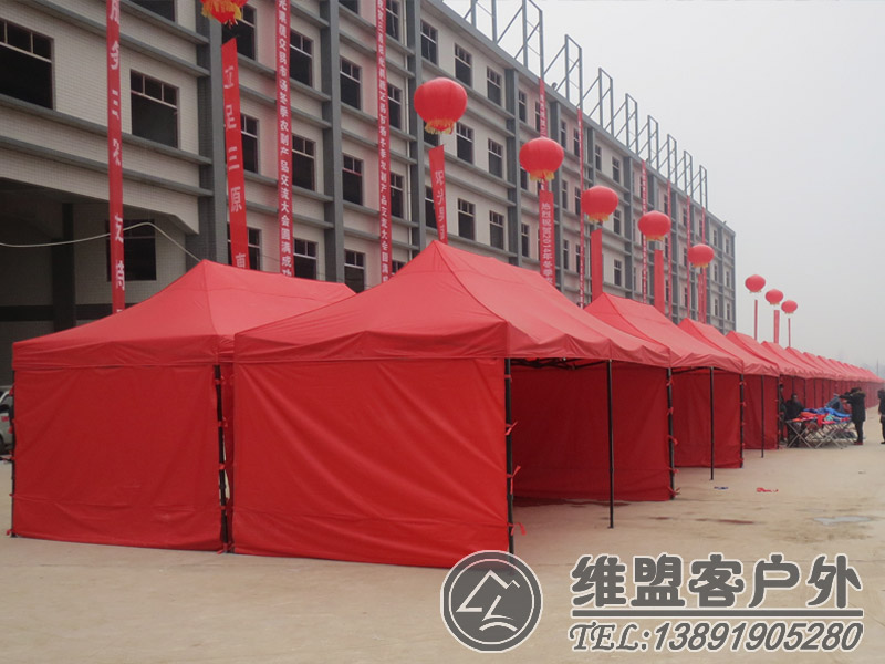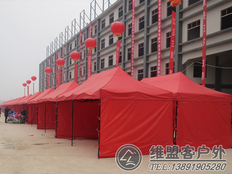 户外折叠帐篷可单独使用,也可联结多个联营使用,应用范围更大更灵活。适用于大型展示会,团体,公共事务, 流动摊档,酒店,会所,学校等各项户外运动和旅游休闲,海滩,野外,探险活动.可做临时场所,临时车库,作业场所等,而且可以印广告是宣传企业形象和旅游休闲的理想选择。